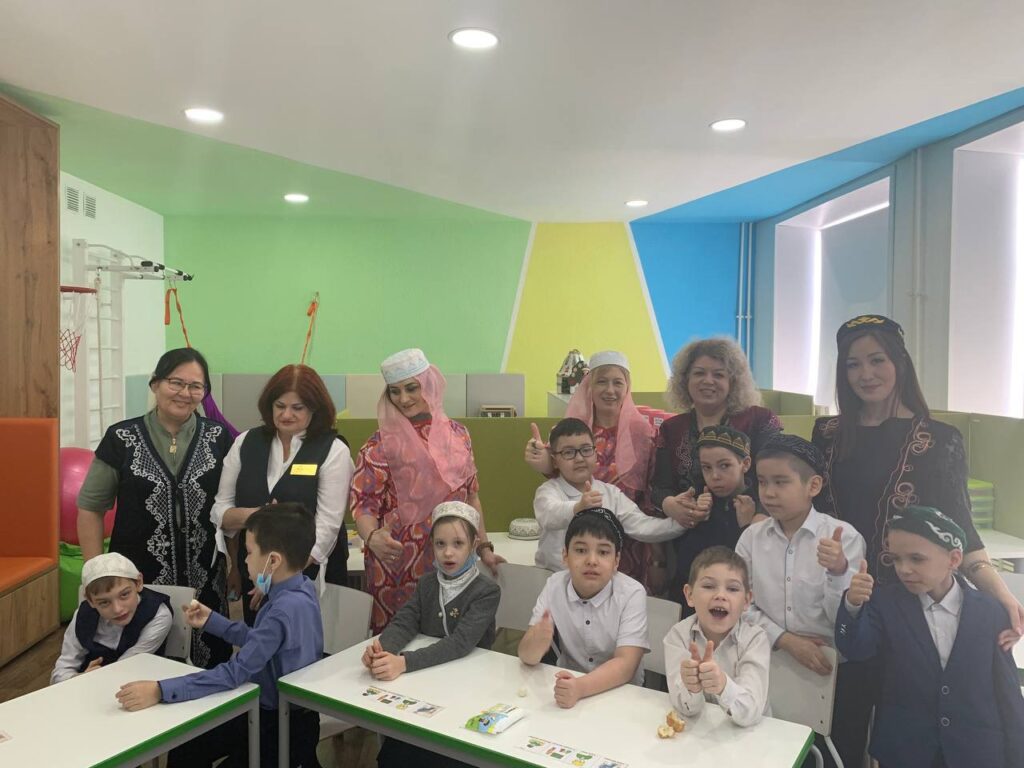 16 наурыз күні Наурыз мерекесі туралы кіріспе әңгіме өткізілді. Әңгіменің мақсаты: Қазақ халқының салт-дәстүрлерімен, мерекелік тағамдарды дайындаудың рецептерімен таныстыру. Көрнекі нұсқаулар, ым-ишара және тақырыптық суреттер арқылы балаларды бірлескен шығармашылық іс-әрекетке баулу, топтық сабақта көмекшілер «Наурыз көже» көктемгі көже пісіруді үйретті. Тесттен сатылай оқыту әдісі арқылы балалар бауырсақ кесіп, желпілдете білді. Сабақтың қорытынды бөлімінде көмекші мұғалімдер балаларға пісірілген бауырсақтарды сыйлады.