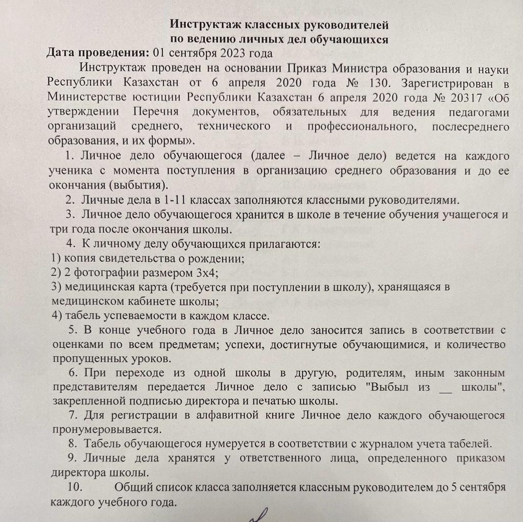 Инструктаж классных руководителей по ведению личных дел обучающихся Нажмите на ссылку чтобы скачать файл Об утверждении Положения о классном руководстве в организациях среднего образования Нажмите на ссылку чтобы открыть страницу